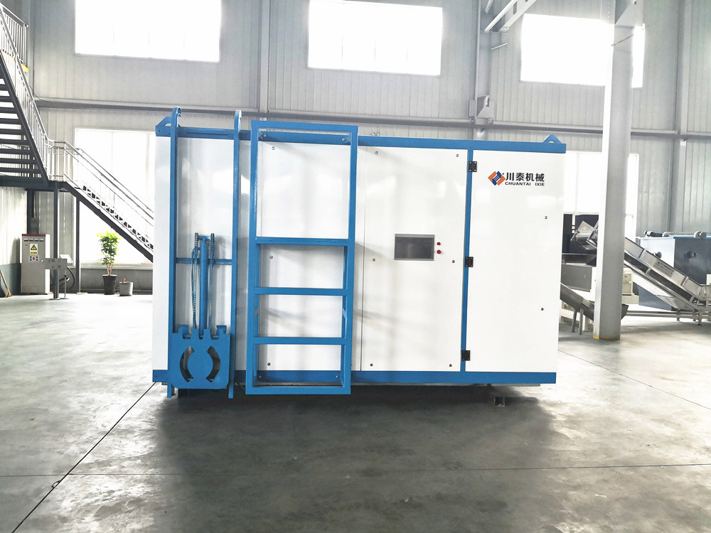 二、大噸位自由組合多種規(guī)格型號(hào)供用戶選配,采用高溫好氧生物降解技術(shù),垃圾降解率95%以上,分解后物質(zhì)為水蒸氣和二氧化碳,可批次加料或持續(xù)加料、步進(jìn)式分解。設(shè)備運(yùn)行時(shí)間根據(jù)物料種類和添加量,快0.5小時(shí)完成分解,慢10小時(shí)完成分解。每處理一噸垃圾耗電30度,消耗生物菌種量折算人民幣約8-10元。大噸位設(shè)備配套分揀平臺(tái),自動(dòng)計(jì)重提升機(jī)、破碎機(jī)、壓榨機(jī)、螺旋輸送或鋼帶輸送機(jī)、復(fù)合型除臭機(jī)、油水渣分離機(jī)。可實(shí)現(xiàn)廢油自動(dòng)回收,廢渣通過(guò)平板壓榨固液分離機(jī)返回生物降解倉(cāng)處理。