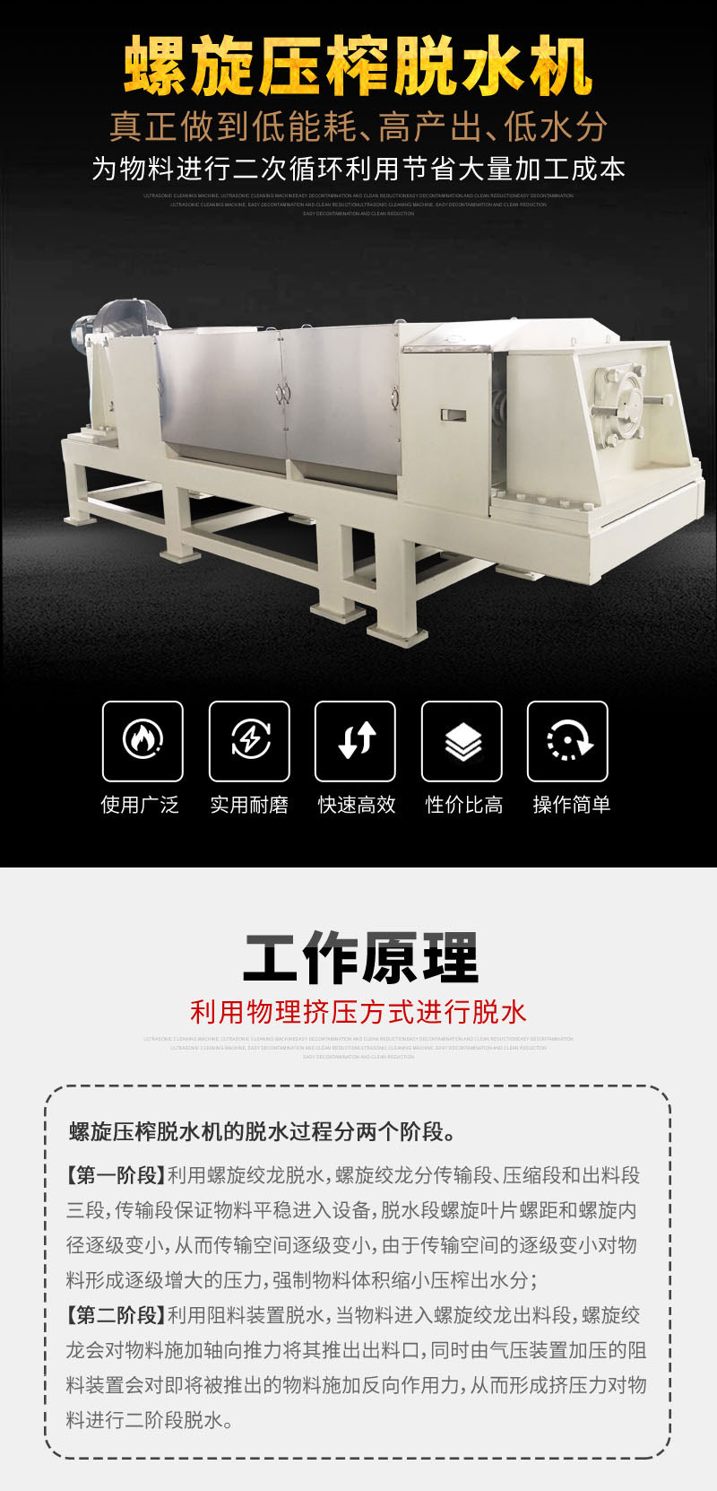 螺旋壓榨機(jī)采用物理擠壓脫水原理,脫水過(guò)程中無(wú)需額外提供熱源,相比同類烘干設(shè)備耗能極低。
