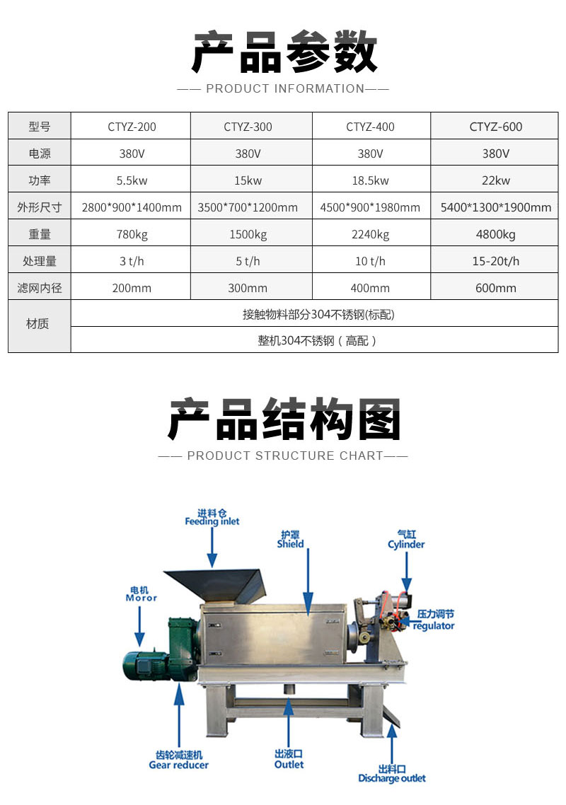螺旋壓榨機(jī)關(guān)鍵部位噴涂耐磨層,螺旋絞龍葉片表面加焊一層合金刀頭,增加耐磨性;**部件采用304不銹鋼制作,耐酸耐堿耐腐蝕,從而大大延長(zhǎng)設(shè)備使用壽命。