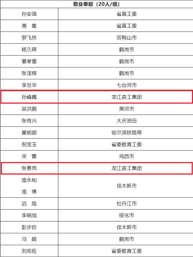 根據(jù)《關(guān)于開(kāi)展2025年度“龍江好人”評(píng)選和“中國(guó)好人”推薦工作的通知》要求,經(jīng)各地各系統(tǒng)推薦、資格審查、網(wǎng)絡(luò)評(píng)議、專家評(píng)審、負(fù)面情況核查、社會(huì)公示等環(huán)節(jié),王莉文等47人(組)當(dāng)選2025年第一季度“龍江好人”。其中,助人為樂(lè)14人,見(jiàn)義勇為4人(組),誠(chéng)實(shí)守信6人,敬業(yè)奉獻(xiàn)20人(組),孝老愛(ài)親3人。龍江森工集團(tuán)孫峰巍和張春雨入選敬業(yè)奉獻(xiàn)類“龍江好人”。