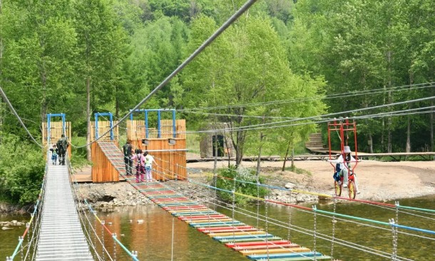 為了讓游客游客擁有更加豐富多元的游玩體驗,原始林景區(qū)在今年精心打造了多個特色項目。“松屬”露營地完美融合了迷人的自然美景、完備的設(shè)施以及舒適的體驗,成為自駕愛好者露營的絕佳之選;低空小纜車運行平穩(wěn),乘坐其中穿梭于山林之間,能夠以獨特視角近距離欣賞秀美風光;挑戰(zhàn)橋橫跨河流之上,每邁出一步,橋體都會隨之晃動,帶來心跳加速的刺激體驗;高空自行車極具挑戰(zhàn)性與趣味性,讓游客在感受空中與河流雙重刺激的同時,與綠水青山親密相擁。此外,樹屋滑梯、松果迷宮、昆蟲觀察站等項目深受孩子們喜愛,他們在盡情玩耍的過程中,還能學習森林生態(tài)知識,培養(yǎng)對大自然的熱愛之情。