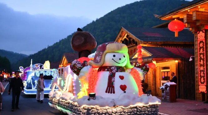 雪鄉(xiāng)景區(qū)延續(xù)了冬季夜游的傳統(tǒng)特色,花車巡游熱鬧非凡,各主題花車獨具特色,像流動的童話世界;東北大秧歌熱情奔放,舞步歡快,盡顯民俗風情;民族樂器樂隊演奏的樂曲悠揚動聽,令人陶醉。游客們可以積極參與其中,深度感受濃郁的東北特色民俗文化。夜幕降臨,璀璨的亮化景觀逐一點亮,流光溢彩的燈光將雪鄉(xiāng)裝扮得宛如夢幻世界。露天蹦迪派對也隨之激情開啟,動感的音樂、絢爛的燈光,讓游客在青山環(huán)抱之中盡情釋放活力。與此同時,特色露天燒烤香氣四溢,各類新鮮食材在炭火上滋滋作響,搭配上冰爽的啤酒,為游客帶來舌尖上的極致享受。